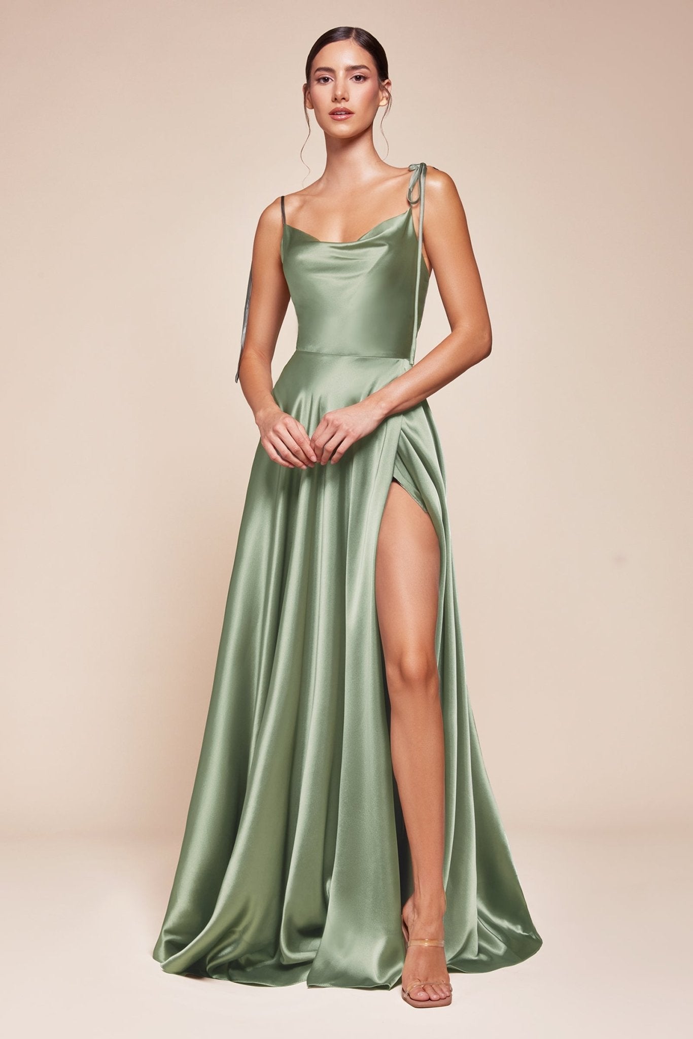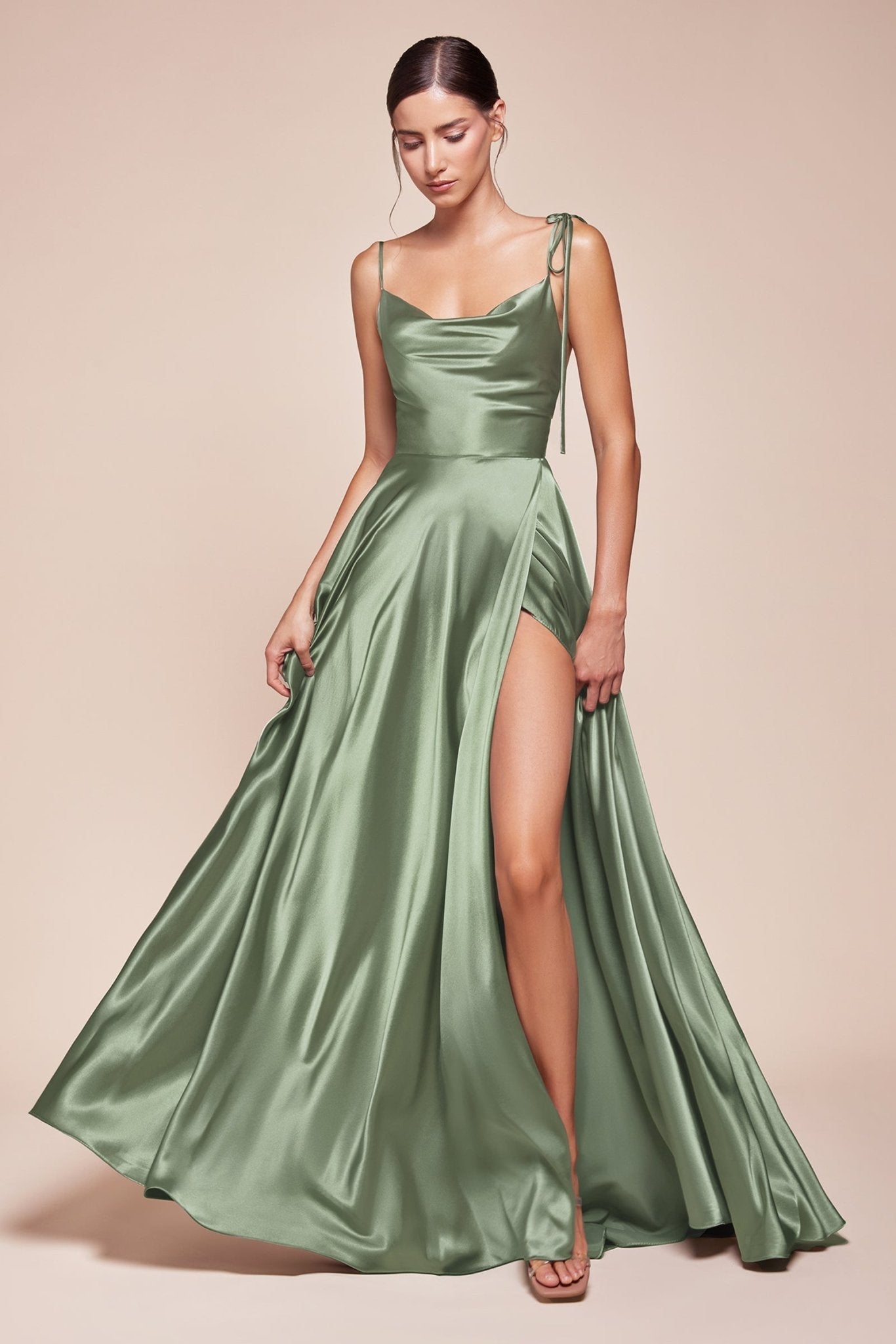 This best-selling Cinderella Divine design has been reimagined for the trend-forward Bridesmaid. The BD104 is a modern romantic gown created with flowy silky fabrication for an elegant silhouette. This silky piece features adjustable spaghetti shoulder ties for a truly custom fit and a cowl neckline that falls naturally along the chest.