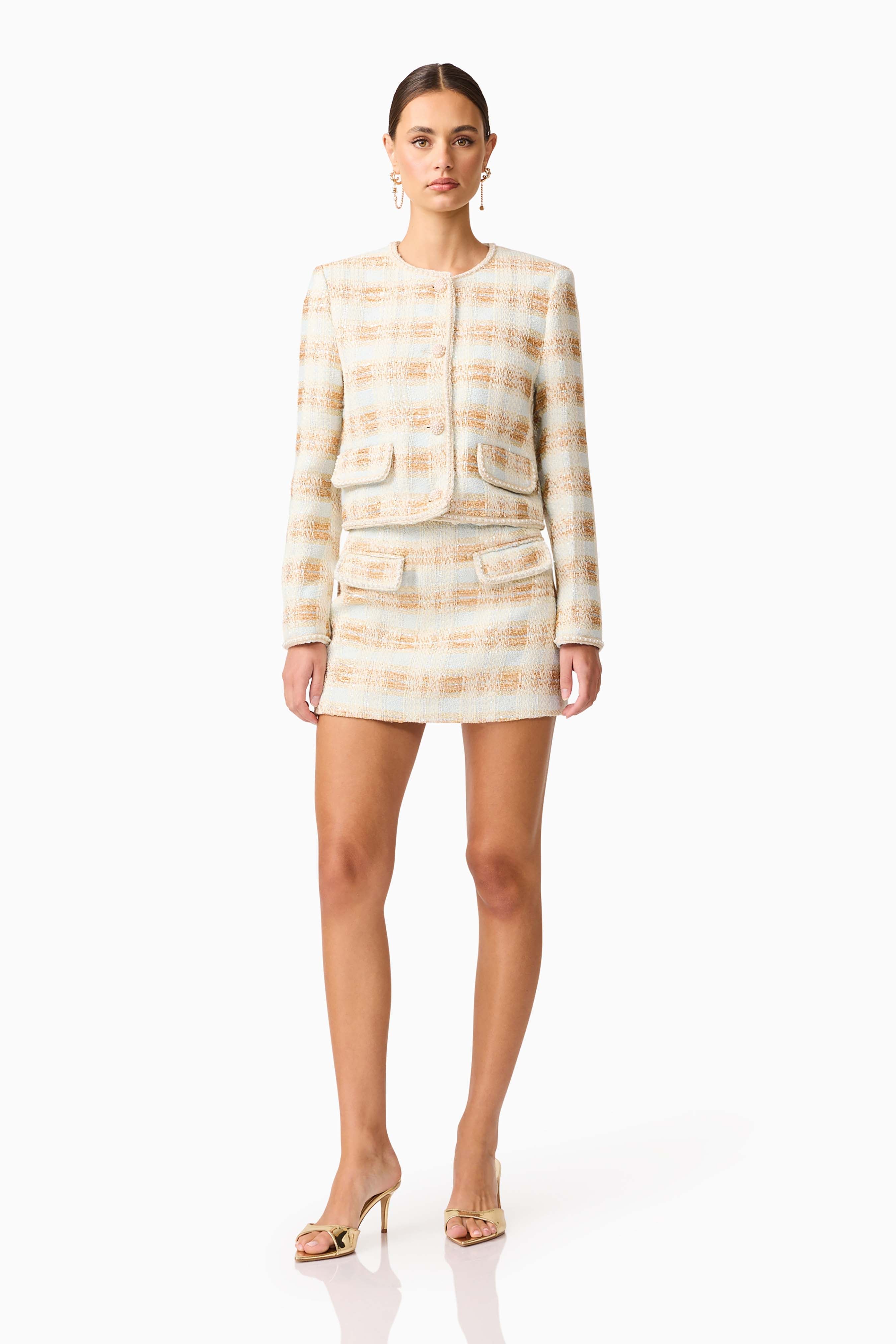 Ashlyn Long Sleeve Tweed Set in White & Gold