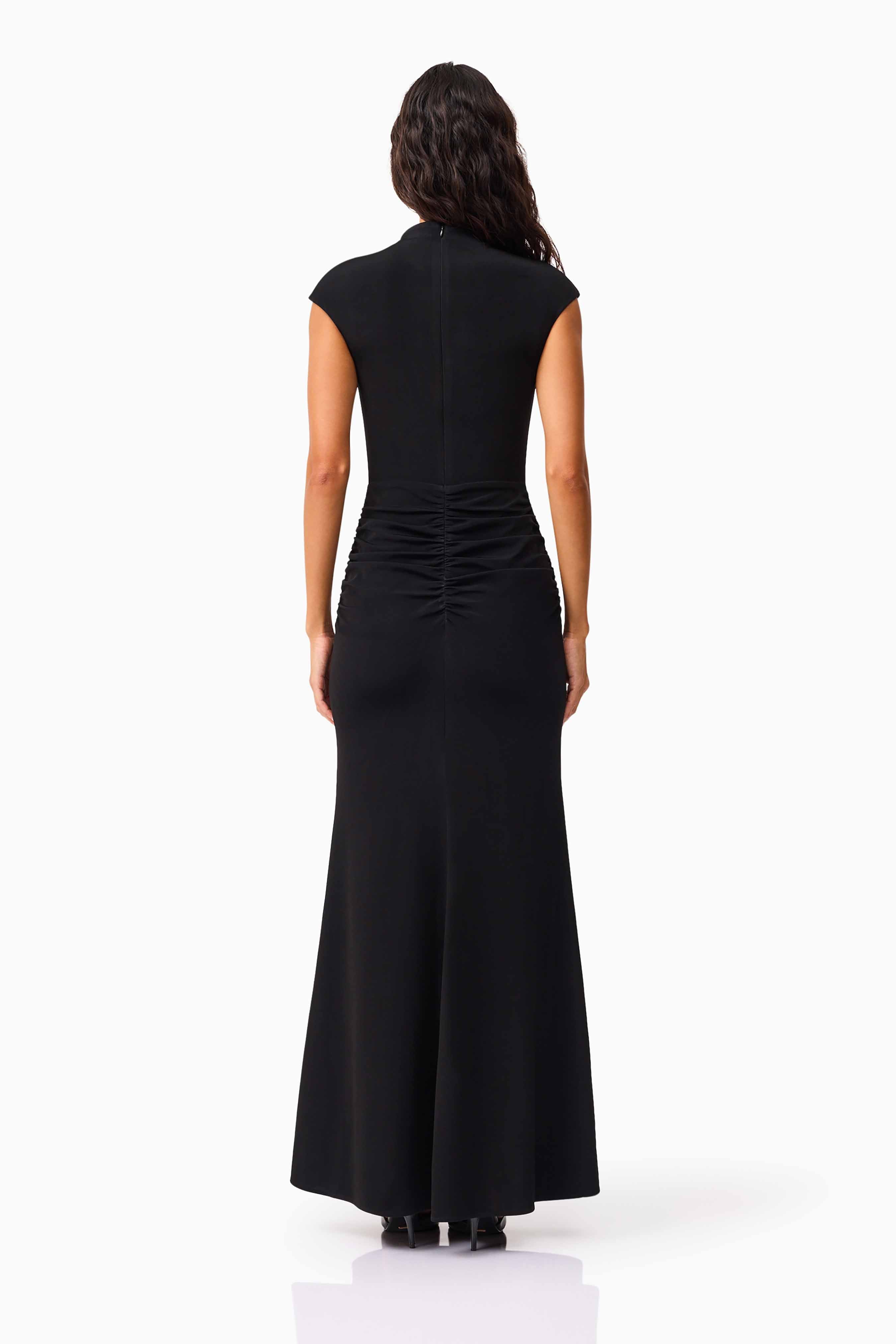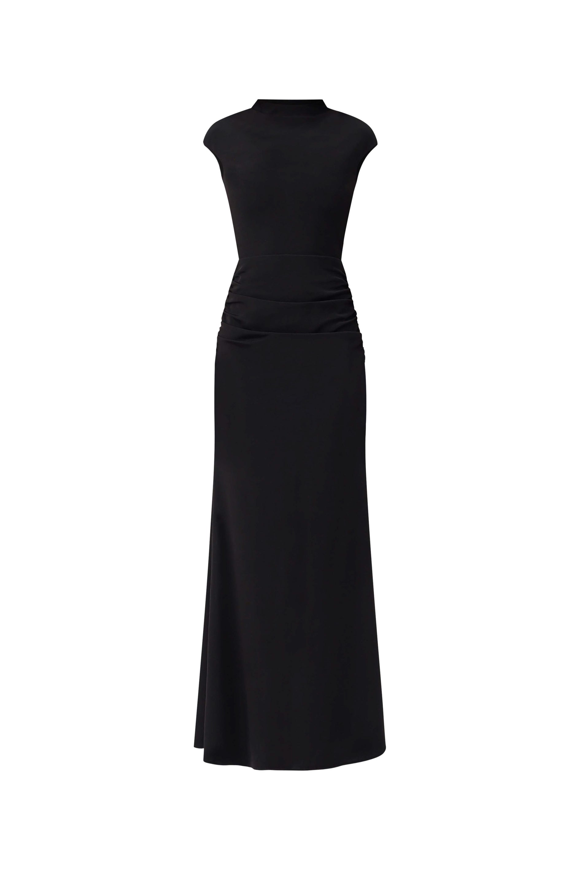 Elevate your formal wardrobe with timeless elegance in the Danica High Neck Gown in Black. Designed to sculpt and flatter, this gown is crafted from a premium drape jersey fabrication that offers stretch and softness in equal measure.