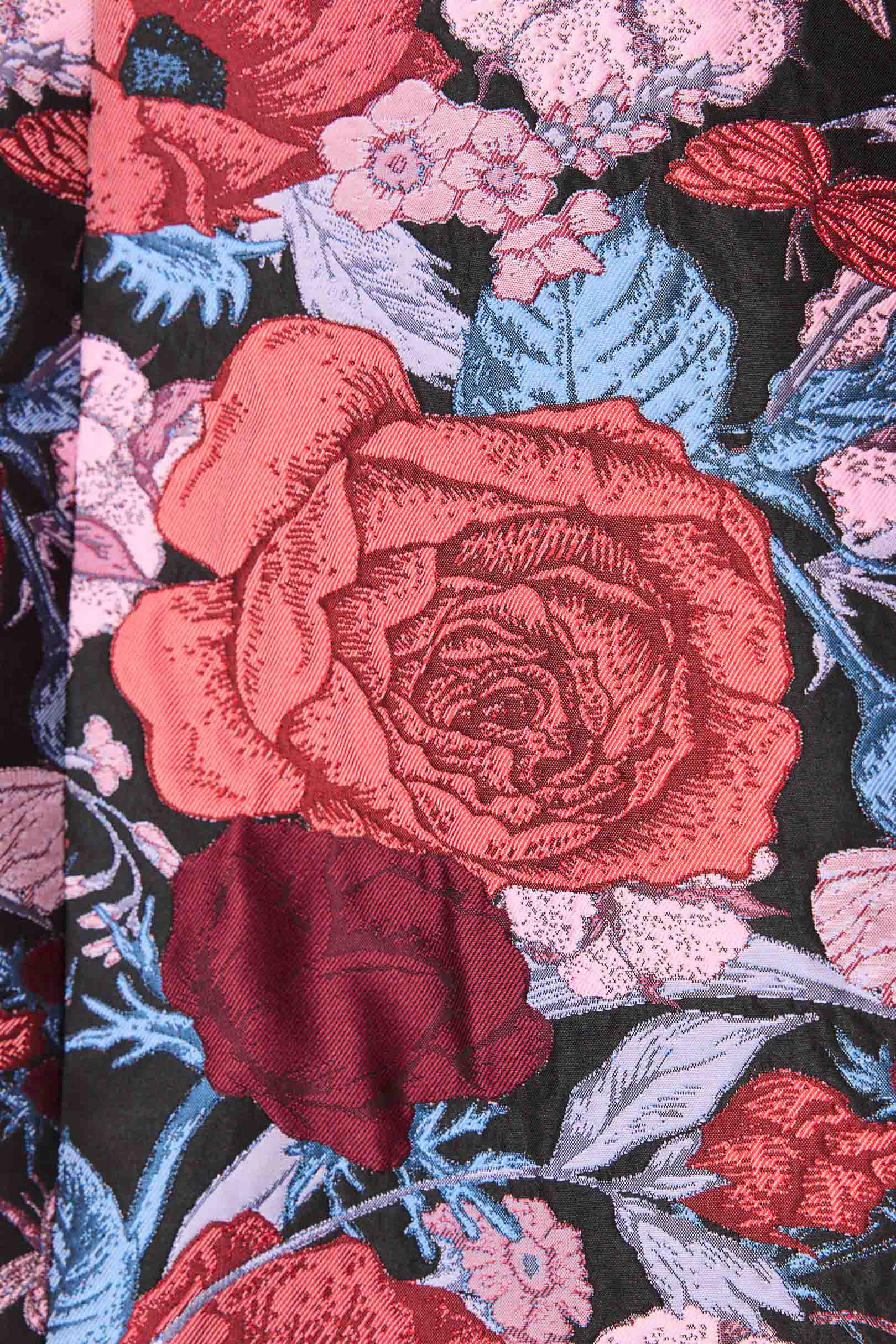 Though the jacquard fabric has no stretch, the expertly tailored construction ensures a smooth, secure fit. Whether you’re heading to a party, celebration, or special dinner, the Delphine Mini is a floral-forward piece that captures attention.