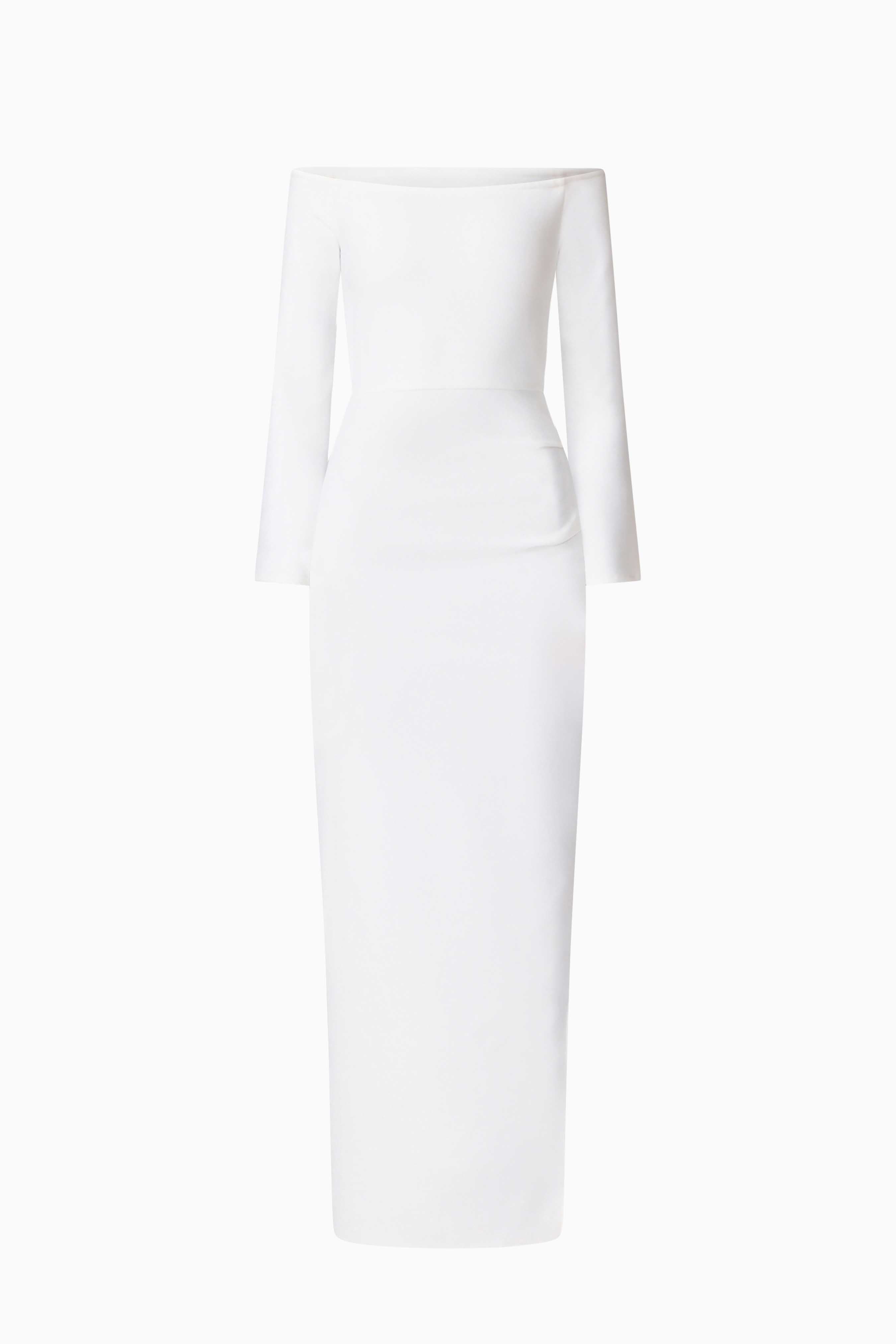 Elevate your wardrobe with the Sonya Long Sleeve Midi Dress in White—a sleek and modern silhouette designed to flatter from every angle. This off-the-shoulder midi dress balances classic elegance with contemporary detailing, making it the perfect choice for special occasions, formal events, or a chic bridal moment.