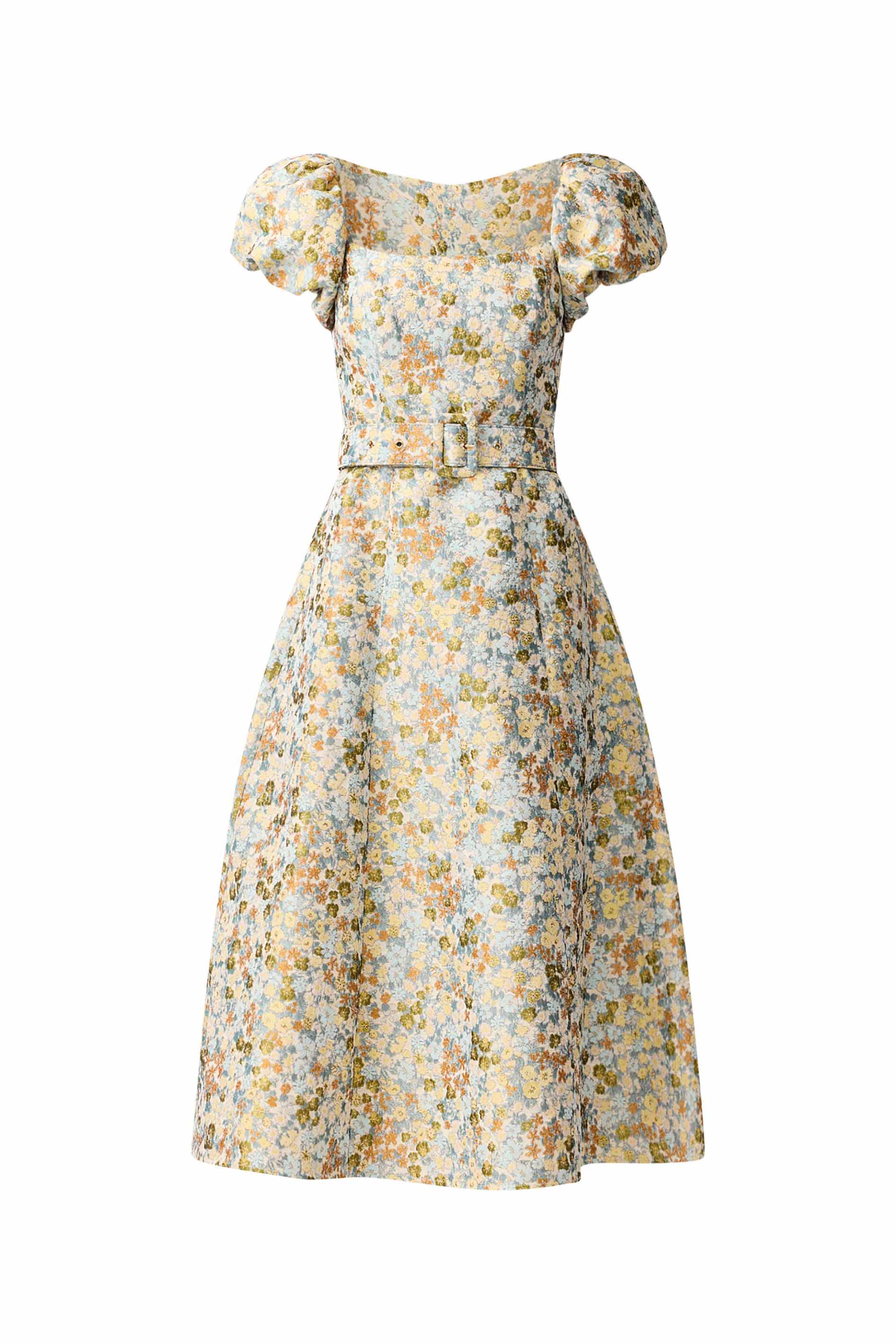 The straight neckline offers a clean, modern silhouette, while dramatic puff sleeves add a playful, romantic element that makes this dress truly unforgettable. Fully lined for comfort and coverage, it features a regular fit that flatters the figure without feeling restrictive — perfect for garden parties, weddings, or elegant daytime events.