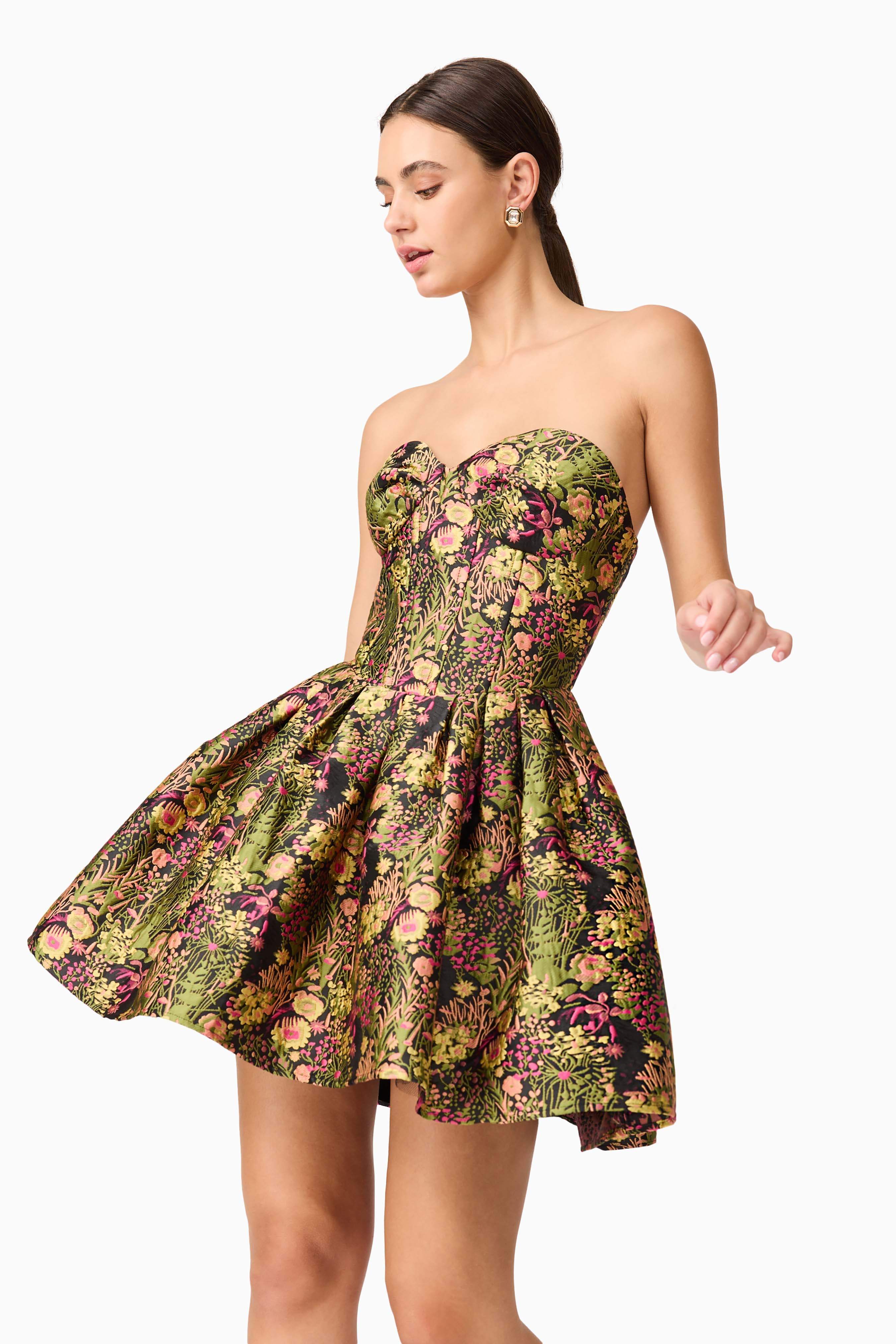 The Cindy Strapless Mini Dress in Floral is the perfect combination of feminine charm and effortless elegance. Designed with a flattering sweetheart neckline, this dress accentuates the décolletage while offering a structured and secure fit. The fit and flare style highlights the waist, flowing into a beautifully pleated skirt that moves gracefully with every step.