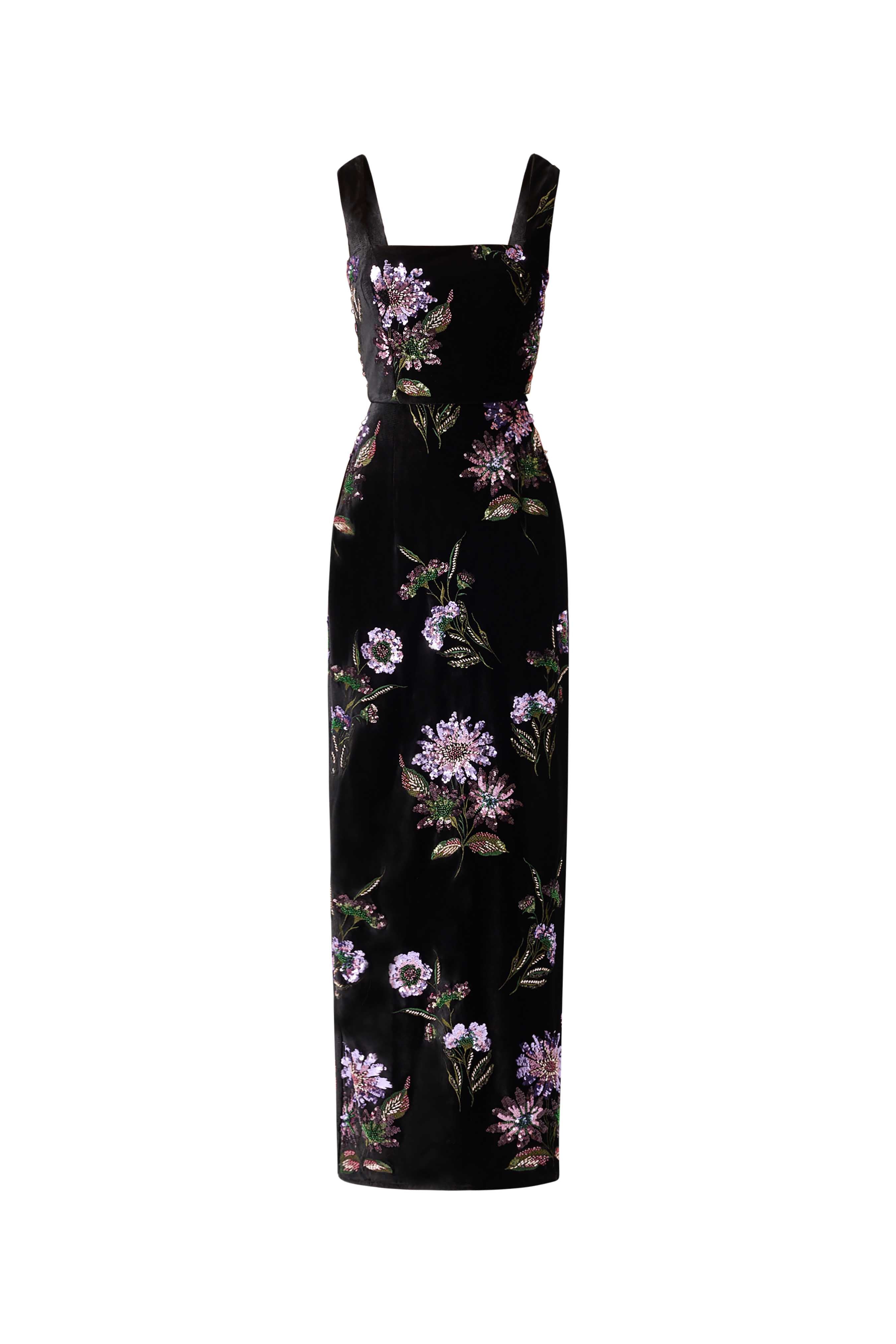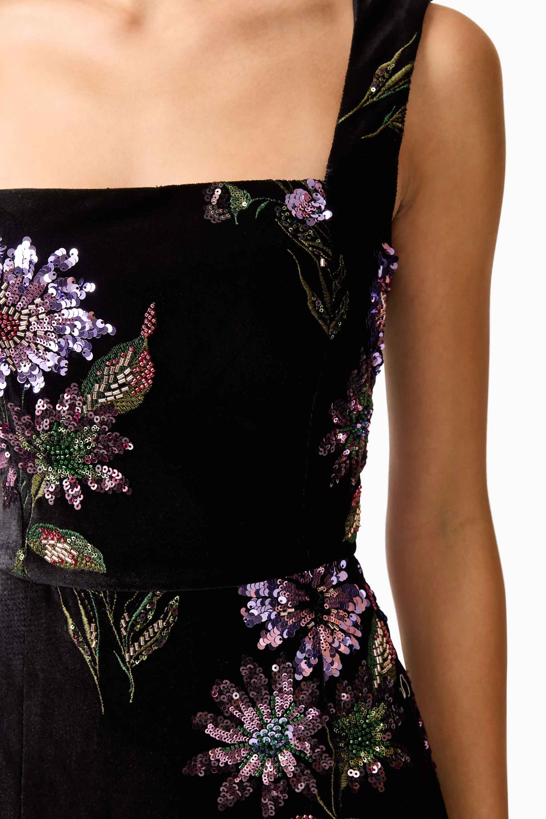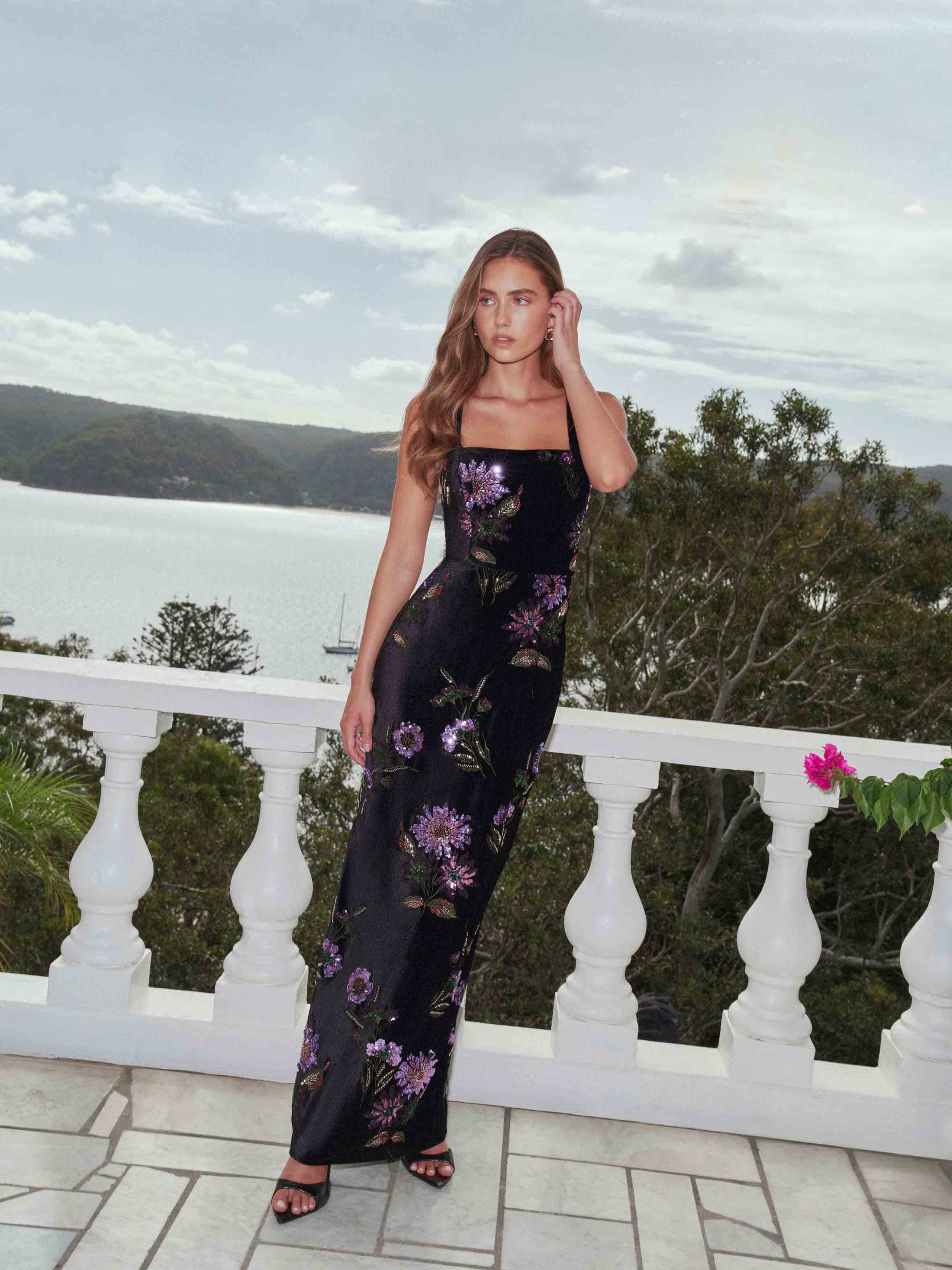 Refined and radiant, the Clio Sequin Gown in Black is designed to make an unforgettable entrance. Crafted from a rich embroidered sequin velvet fabrication, this velvet gown is elevated with striking detail, texture, and a timeless silhouette.