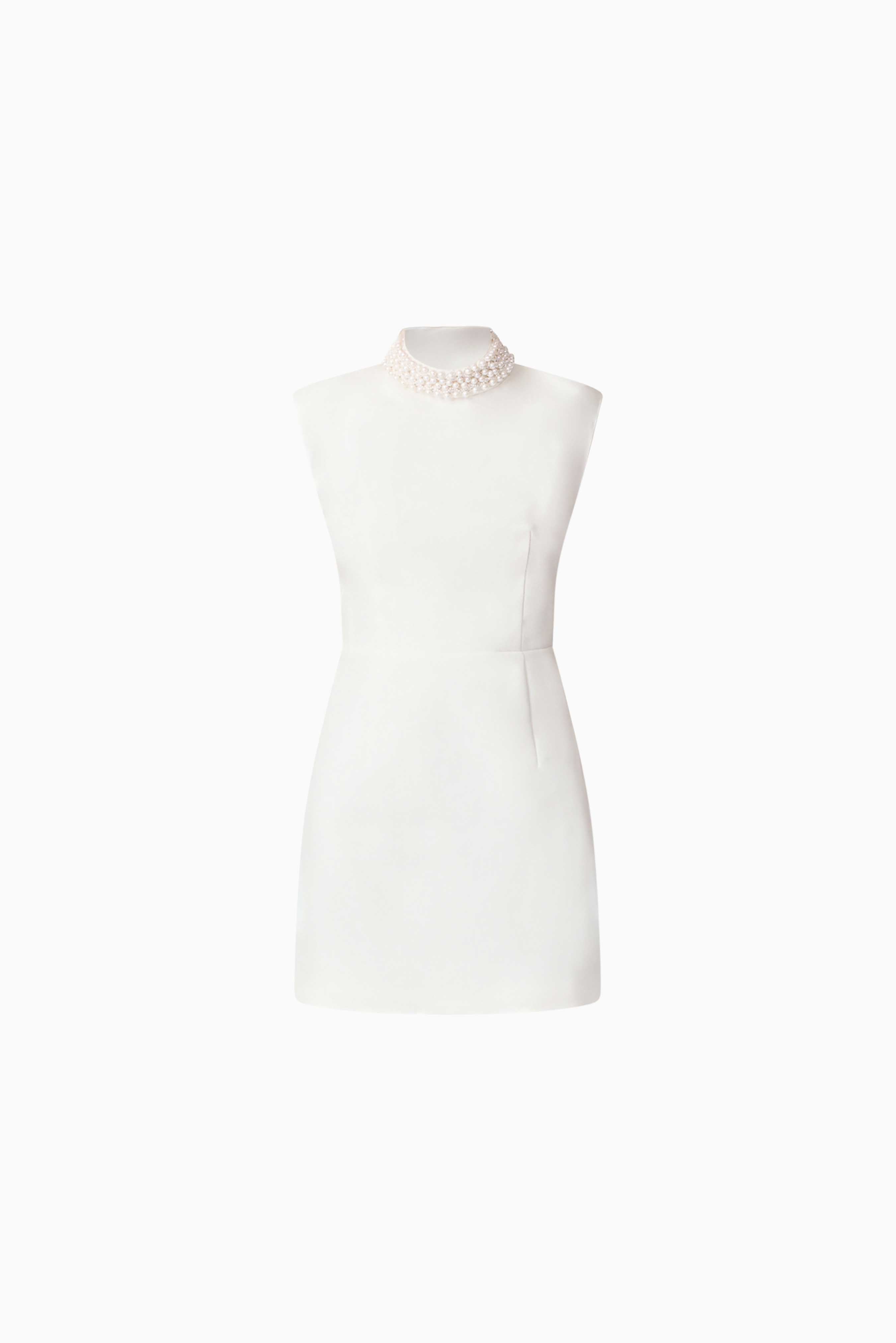 Crafted from a bonded crepe fabrication, the Rafaela holds its shape beautifully, delivering clean lines and a structured yet comfortable fit. Its stand-up collar neckline, trimmed with delicate pearl detailing, adds a sophisticated finish, while cap sleeves with light shoulder pads give subtle shape and balance to the form.
