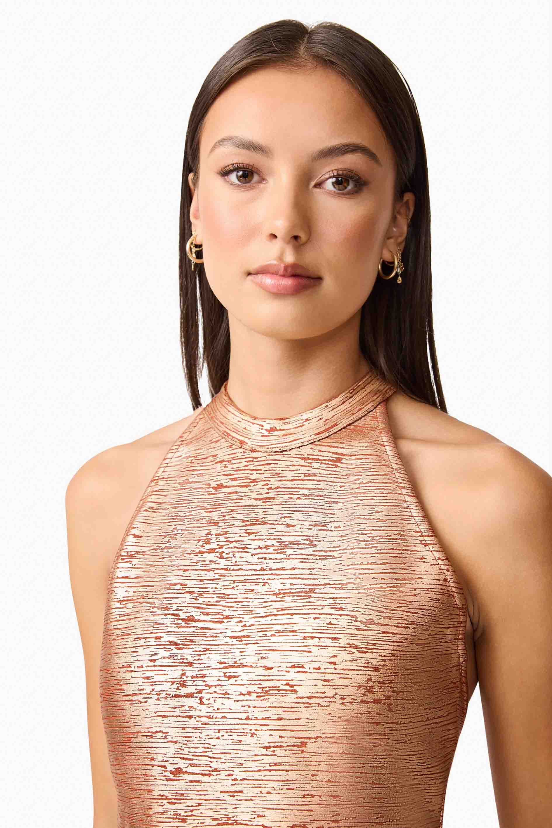 Sleek and striking, the Rhian Halter Gown in Orange is a modern take on timeless eventwear. Designed with a bold halter neckline and sculpted fitted bodice, this gown flatters the frame while making a vibrant statement in its standout hue.