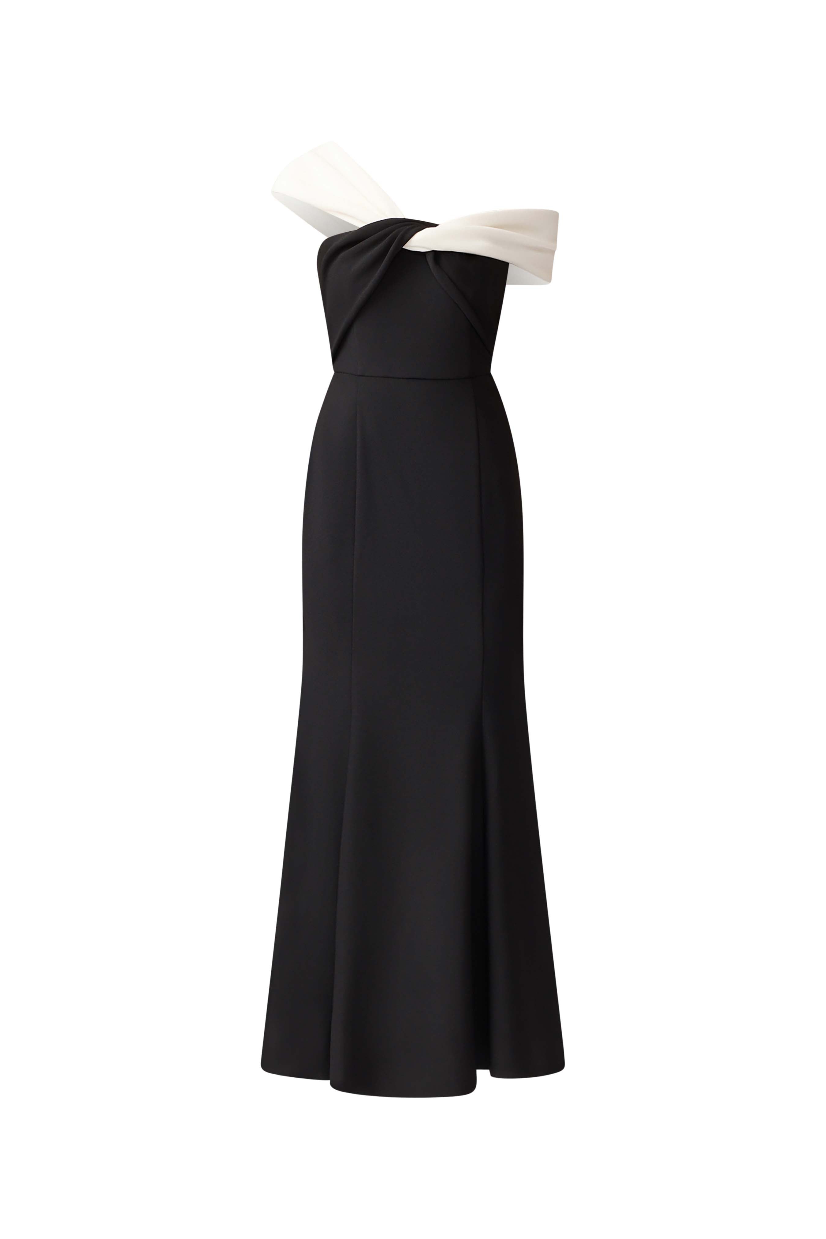 Whether gliding across a gala floor or posing at a formal event, the Ruby gown is designed to impress. The off-the-shoulder straps beautifully frame your neckline, while the asymmetric cut adds a contemporary twist. With its bold black-and-white contrast, fitted elegance, and sweeping skirt, this gown is a memorable choice for once-in-a-lifetime occasions.